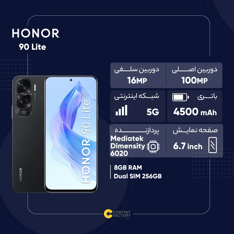 بعد از اینکه برند Honor فعالیت خود را بهصورت مستقل از هوآوی شروع کرد و خبری از تحریمهای گوگل نبود و تمامی محصولات این شرکت امکان پشتیبانی از سرویسهای خدمات گوگل را داشتند، توانست محصولات بسیار باکیفیتی را روانه بازار کند. گوشی آنر 90 Lite هم یکی از این گوشیهای میانرده و باکیفیت است. در نمای روبهرویی این گوشی به صفحهنمایش با ابعاد 6.7 اینچ و رزولوشن 1080×2388 پیکسل از نوع IPS مجهز شده که توانایی ارائه نرخ بروزرسانی 90 هرتز آن سبب شده تا عملکردی روان و بدون لگ را ارائه کند. در قسمت پشتی هم یک سنسور دوربین اصلی قدرتمند 100 مگاپیکسل در کنار سنسور 5 مگاپیکسل فوقعریض یا همان ultrawide بههمراه سنسور 2 مگاپیکسل ماکرو برای این گوشی در نظر گرفته شده است که سنسور دوربین اصلی 100 مگاپیکسل، در نور روز و وشب عملکرد بسیار خوبی را به شما ارائه میکند. برای دوربین سلفی هم سنسور با رزولوشن 16 مگاپیکسل در نظر گرفته شده که بهخوبی توقعات شما را در عکاسی نور روز برآورده میکند. حضور پردازنده دیمنسیتی 6020 شرکت مدیاتک، سوای پشتیبانی از شبکههای اینترنتی 5G، در اجرای برنامههای کاربردی و بازیهای محبوب، عملکرد خوب و کاملا قابل قبولی دارد. باتری 4500 میلیآمپرساعت آنر 90 Lite به ازای هر بار شارژ صد درصدی در حالت استفاده معمولی، توانایی ارائه زمان آماده بهکار یک روز را دارد. پشتیبانی از فناوری شارژ سریع 35 وات هم سبب شده تا امکان شارژ 55 درصدی در مدت زمان 30 دقیقه دارد. در مجموع آنر 90 Lite با بهره بردن از صفحهنمایش 90 هرتز، دوربین اصلی قدرتمند 100 مگاپیکسل و پردازندهای مناسب، میتواند گزینه مناسبی در این بازه قیمتی باشد.